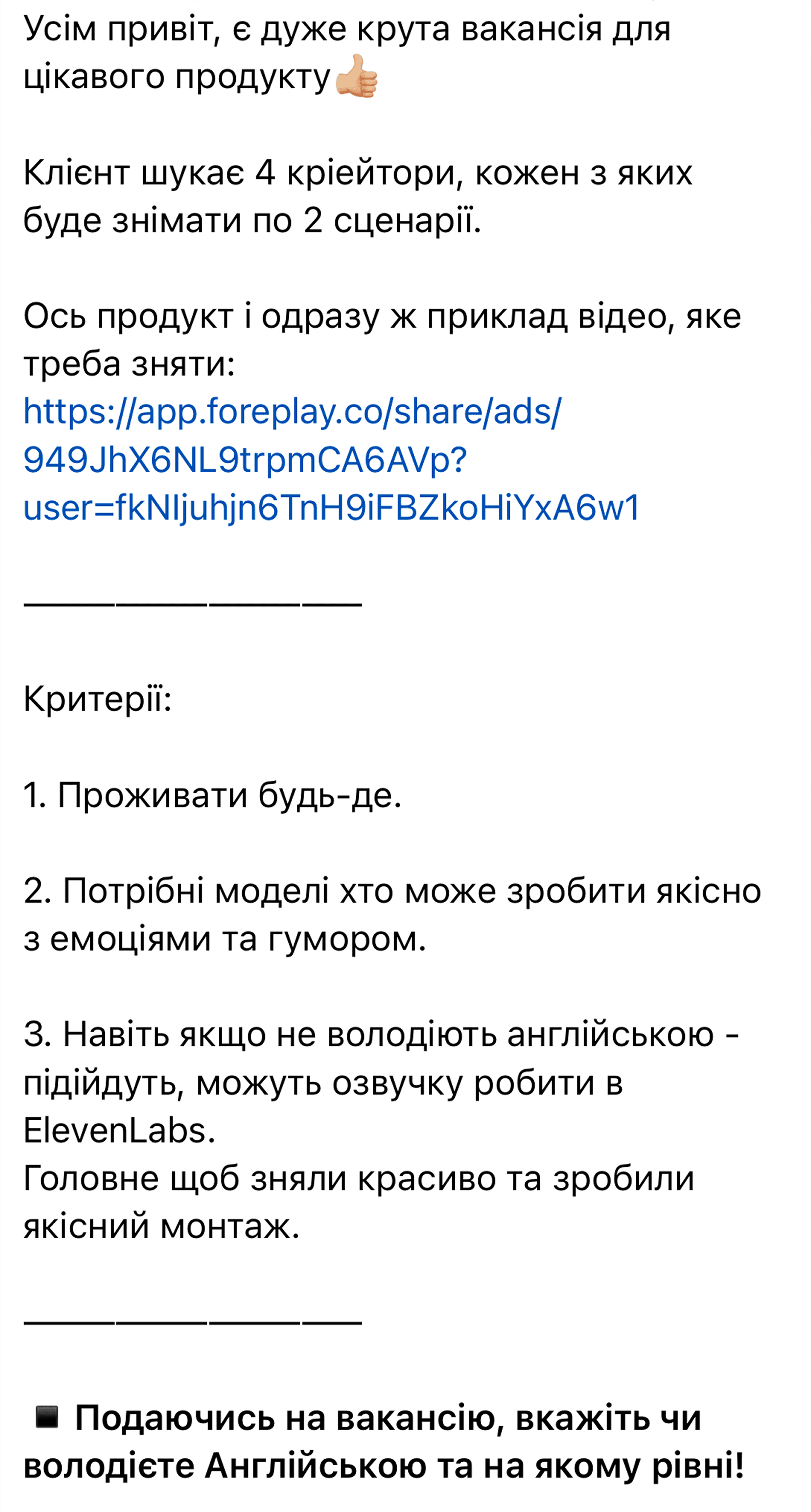 Комʼюніті досвідчених UGC креаторів та Монтажерів - назавжди!