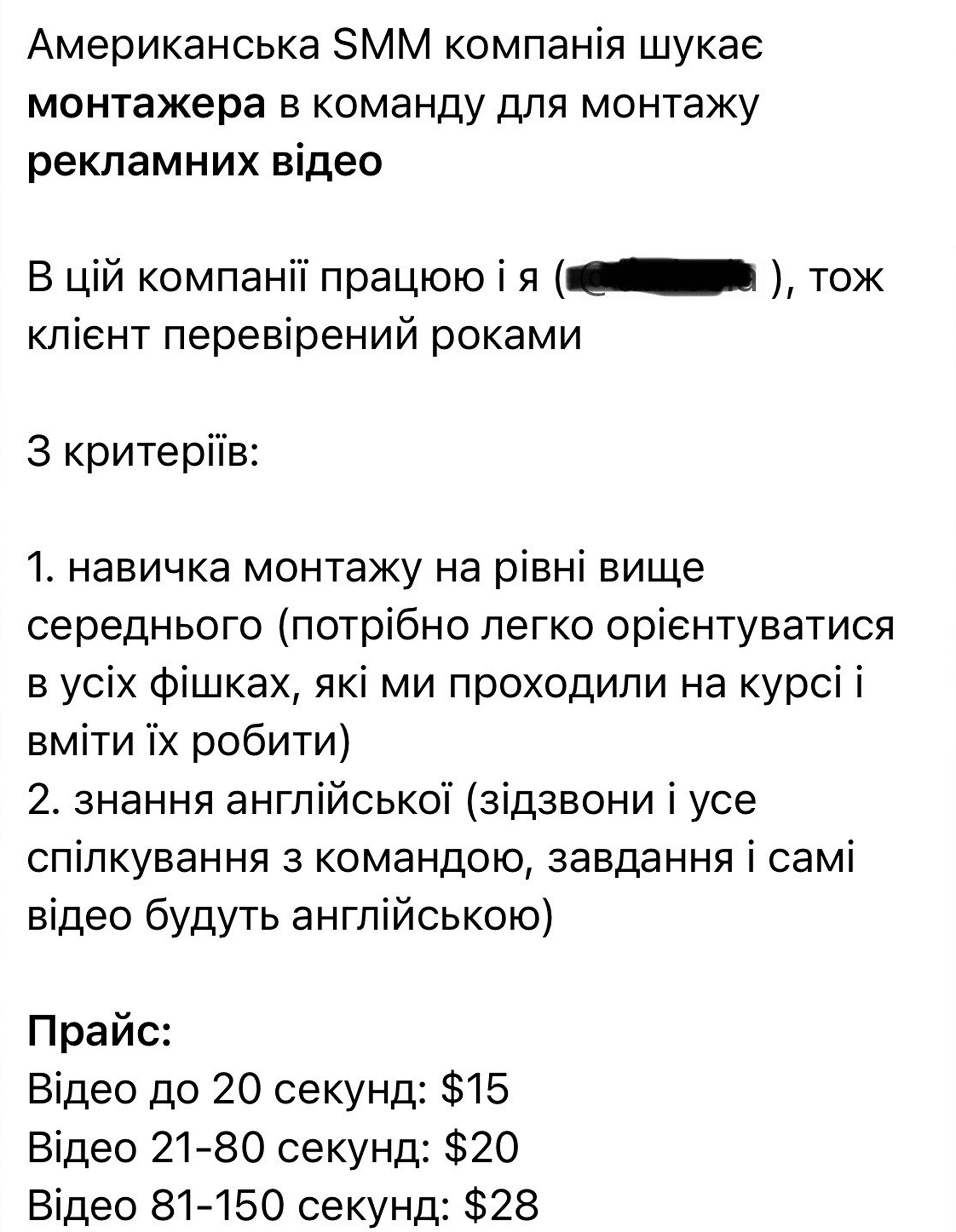 UGC креатори та Монтажери заробляють від 20 000 грн до